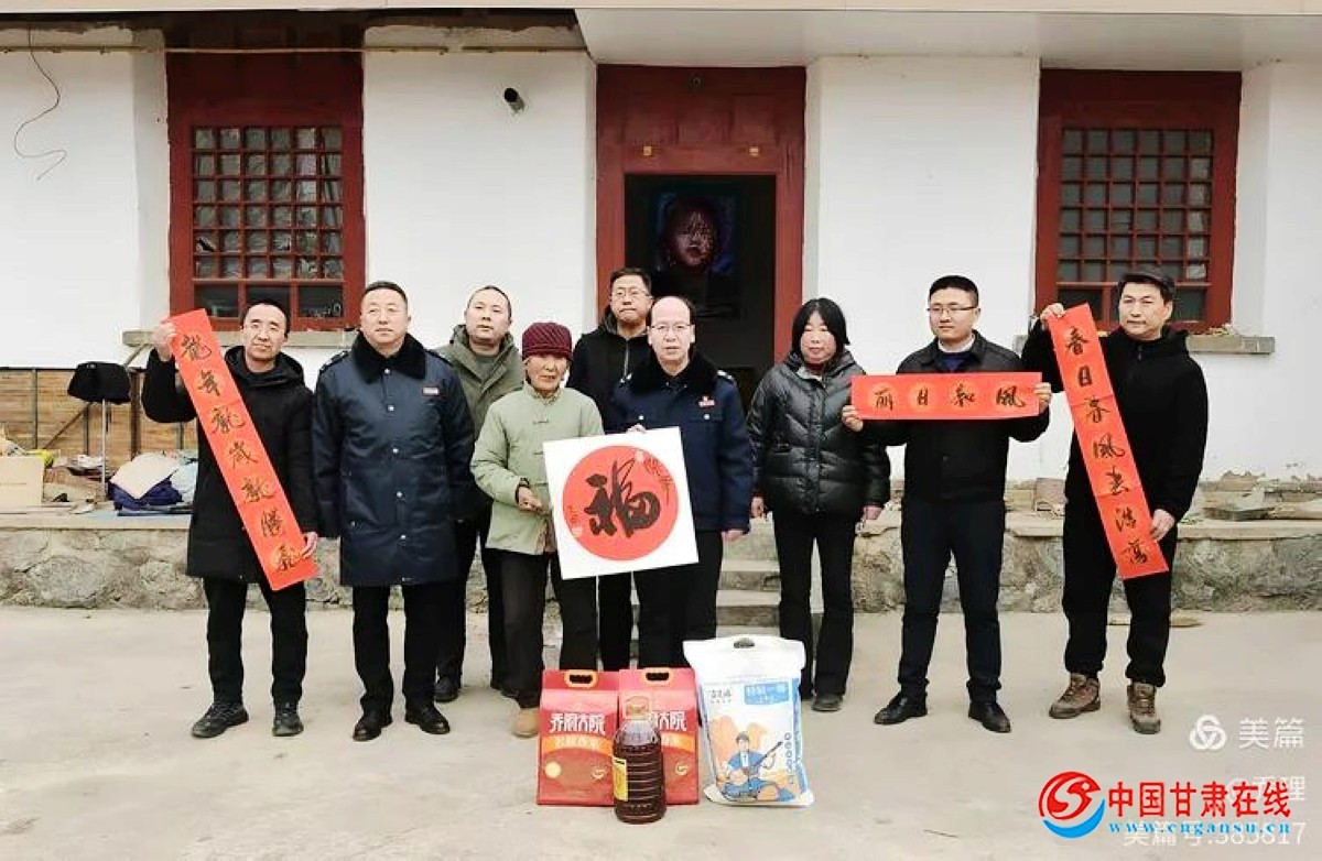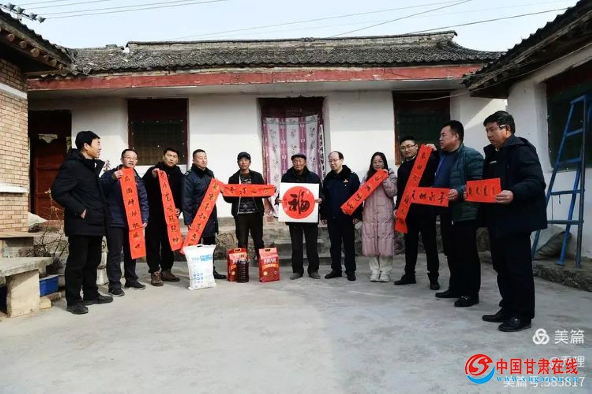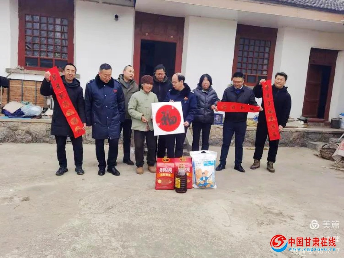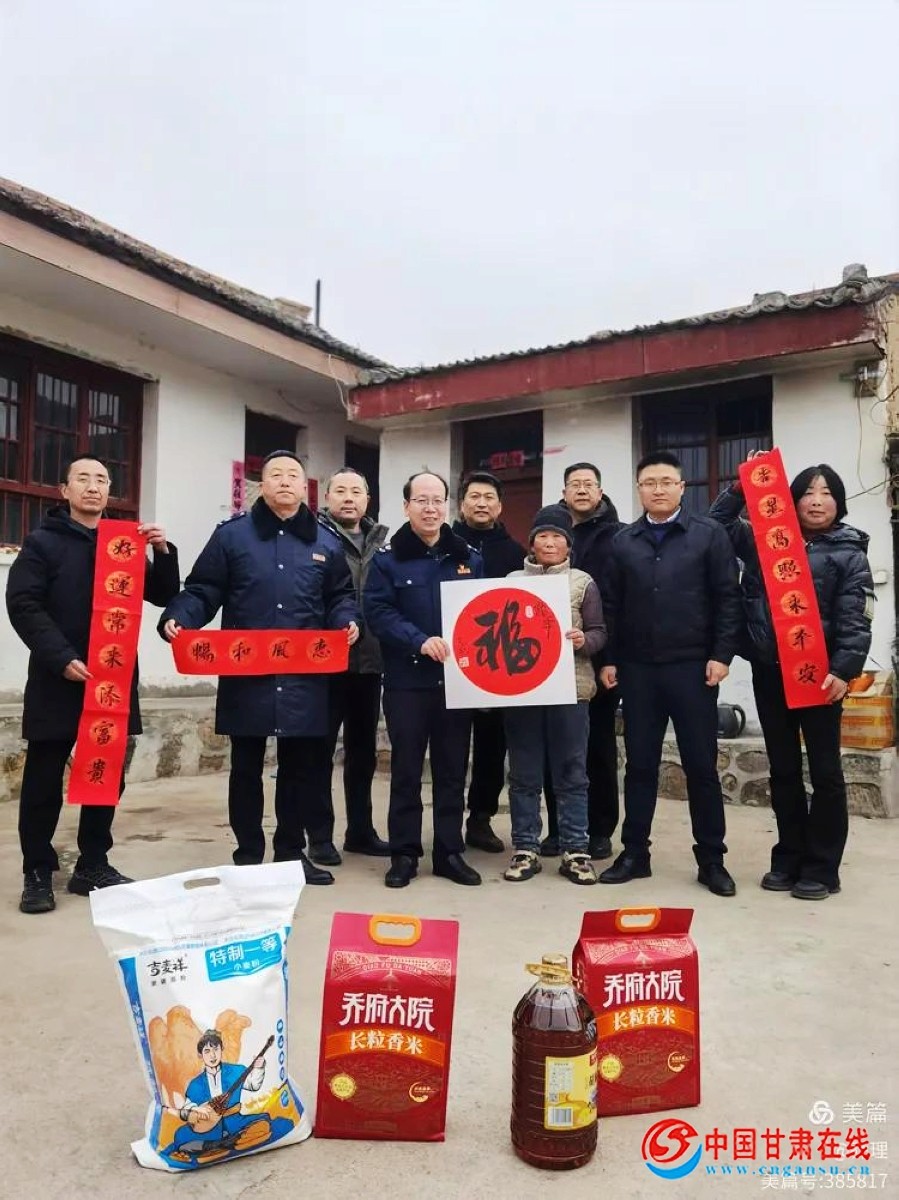 1月10日,麦积区税务局党委一班人一行先后来到元龙镇李家沟村、白家庄村,深入监测户和特殊困难群众家中进行走访慰问。每到一户,他们不仅送上米面油等生活必需品,还特别准备了春联和书法“福”字,为村民们提前送上新春的祝福。