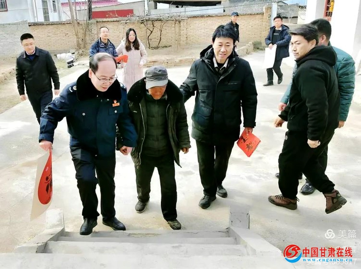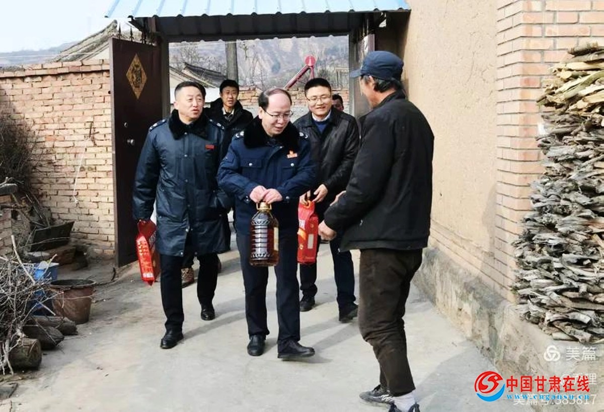 中国甘肃在线麦积讯(特约记者:乔理 陈治平 通讯员梁锐)为深入贯彻习总书记视察甘肃的重要讲话与指示精神,切实做好巩固拓展脱贫攻坚成果与乡村振兴的有效衔接,践行新时代“枫桥经验”,国家税务总局天水市麦积区税务局党委书记、局长赵超带领局党委成员深入天水市麦积区元龙镇李家沟村、白家庄村,与驻村帮扶工作队、村干部共同开展“进百家门、访百家情、解百家难、暖百家心”主题活动。此次活动旨在落实全市“四百活动”动员部署会议精神,通过走访慰问困难群众,提前送上新春祝福,真正做到访民情、察民意、解民困、暖民心。