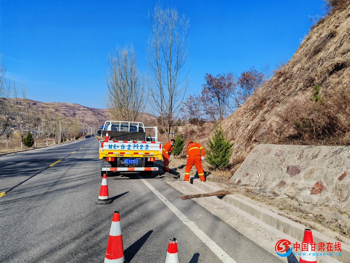 中国甘肃在线秦州讯 随着近期气温回暖,秦州公路段积极践行绿色环保理念,同步推进路域环境整治工作,组织养护人员对辖养路段内冬季未使用的防滑料进行清理回收工作。