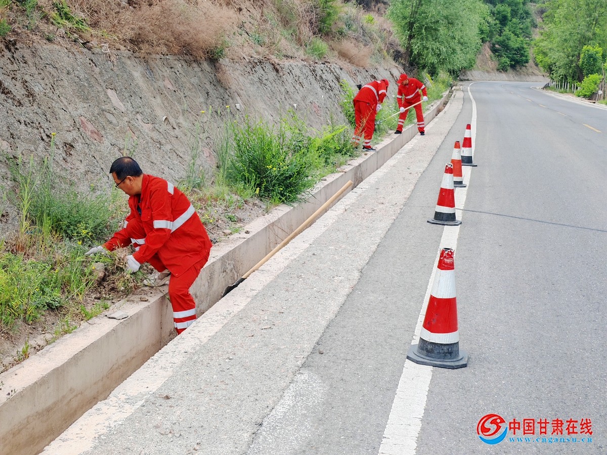 中国甘肃在线秦州讯 入夏以来,随着雨水增多、气温升高,国省干线公路绿化带、路肩、边沟边坡等地杂草进入生长 “旺季”,高密度、快生长的杂草不仅遮挡交通警示标志标牌等安防设施,还导致边沟排水不畅,对公路路域环境和行车安全构成双重威胁。秦州公路段迅速响应,抢抓晴好天气窗口期,组织养护人员开展专项清理行动,全力守护公路安全畅通。