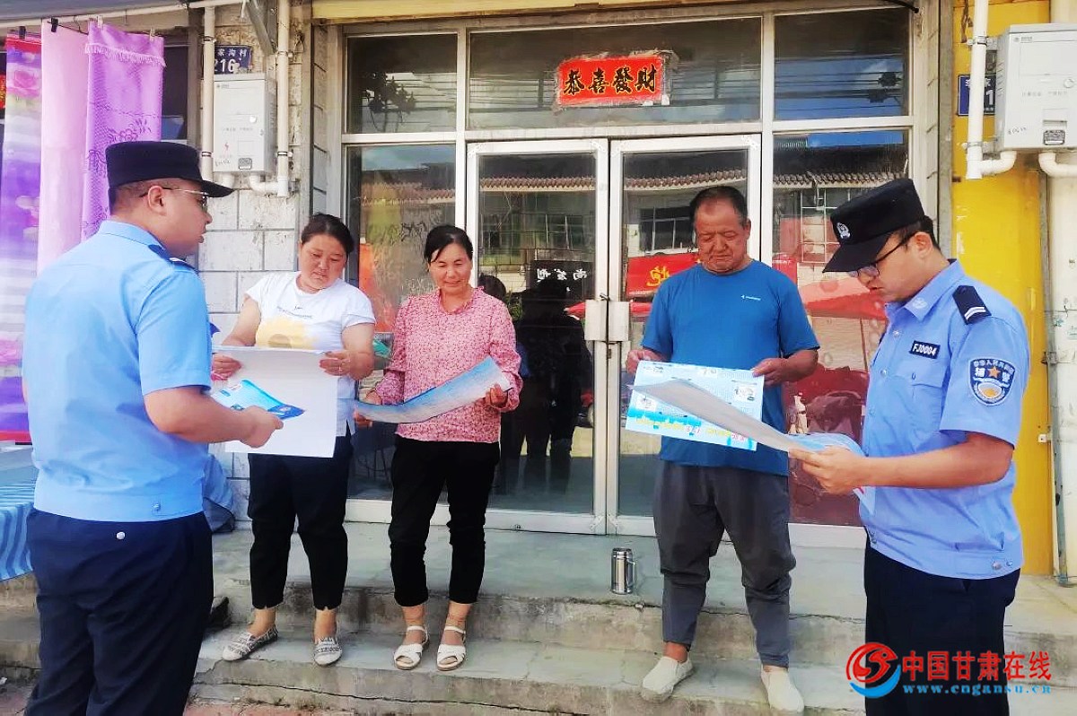 中国甘肃在线麦积讯 为切实做好人民群众安全防范教育,预防和减少电信网络诈骗案件发生,8月3日,天水市公安局麦积分局元龙派出所积极组织民警深入辖区开展防范和打击电信诈骗宣传活动。活动中,民警深入辖区街面、商户等场所,通过发放宣传材料、现场讲解