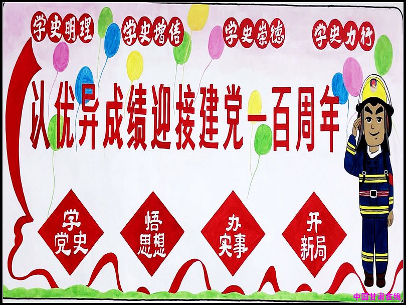 为了更好地强化党史学习教育,切实增强指战员知史爱党、知史爱国情怀,大队利用营区内墙面通过手绘的方式用精炼的语言、生动的图片,形成一面党史教育展览墙,进一步营造大队党史学习教育浓厚氛围。此次文化墙的内容主要以党史学习教育活动为主题,主题鲜明,