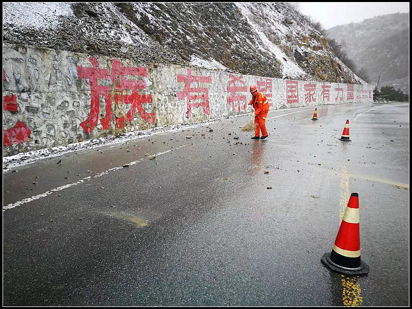 3月18日至19日,受降雨影响,省道208线洛礼路部分靠山路段山体出现松散,落石较多。为确保道路安全畅通,武山段加强省道208线的巡查力度。3月19日清晨,武山公路段洛门站职工在上路巡查时,发现S208线洛礼路有三处山体零星落石,对过往车辆