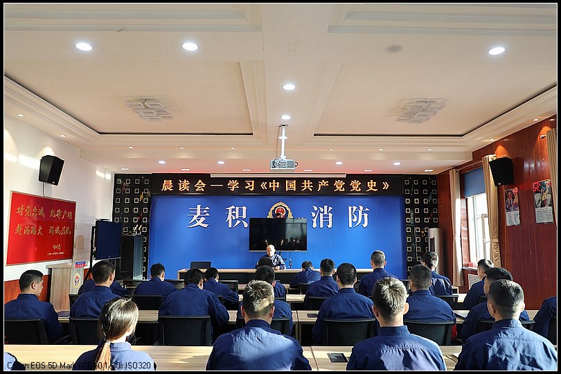为庆祝中国共产党成立100周年,大力弘扬党的优良传统和作风,引导全体党员指战员以更坚定的信念、更无畏的勇气、更昂扬的斗志、更深厚的情怀、更严实的作风投入当前各项工作任务。2月23日,麦积大队利用晨读时间组织集体学习中国共产党党史。  会上,