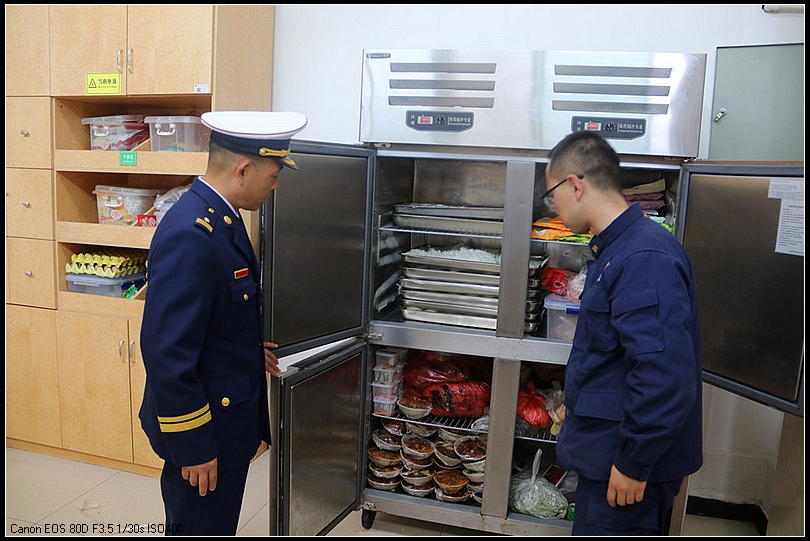 为切实做好春节期间伙食保障,确保全体指战员度过一个祥和温馨的春节,麦积大队进一步改善伙食管理模式,深化膳食营养,在科学管理,营养配餐等方面大下功夫,全力做好春节期间的伙食保障工作。2月9日,政治教导员伏小伟督导检查了天河站春节期间食品安全工