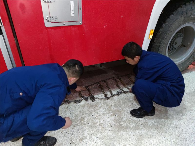 • 宁远消防救援站为执勤车辆安装防滑链
