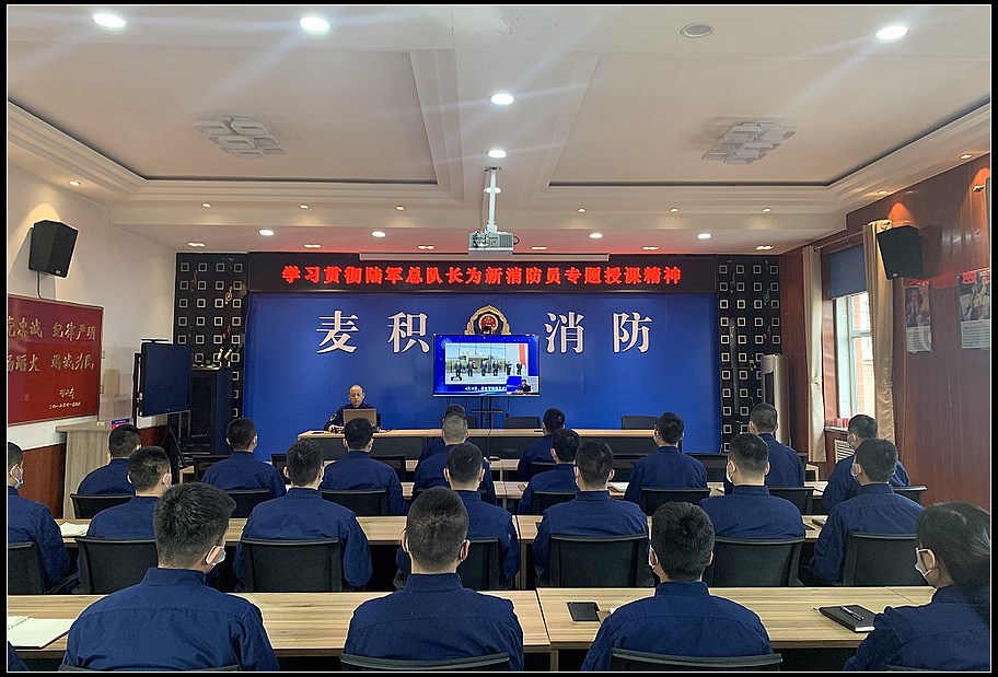 为认真学习贯彻陆军总队长为新消防员专题授课精神,坚定全体指战员投身消防救援事业的信心、决心,不断推进消防救援工作和队伍建设创新发展,1月25日麦积大队积极组织全体人员学习。  授课中,陆军总队长以《践行训词精神锤炼过硬本领 为甘肃消防救援事