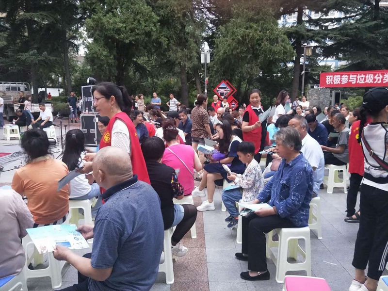 8月11日晚,大城街道光明巷社区新时代文明实践站志愿者现身纳凉晚会,开展垃圾分类宣传,营造创建文明城市的良好氛围。戏台子刚搭起,居民陆陆续续来到现场,社区志愿者穿梭在三两成群的居民中间,拉家常的做起了宣传:“赵阿姨你也来了,今天的节目非常好