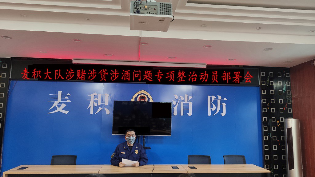 为确保消防队伍安全稳定,严防涉赌涉贷涉酒事件发生。6月8日上午,麦积大队召开涉赌涉贷涉酒问题专项整治工作动员部署会。会上,教导员宣读了支队下发的《天水市消防救援支队涉赌涉贷涉酒问题专项整治任务清单》内容,并对涉赌涉贷问题相关法律纪律条文进行