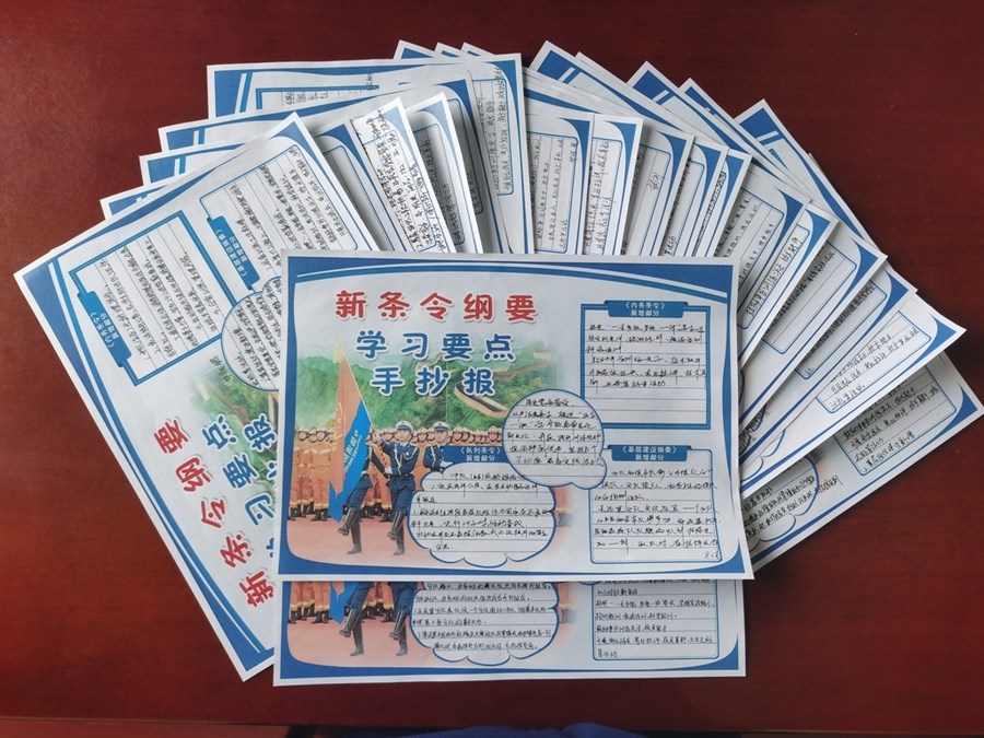 为进一步强化新条令纲要的学习,增强全体指战员遵守条令条例和各项规章制度的自觉性,营造良好的学习氛围。近日冀城消防救援站组织人员填写新条令纲要学习要点手抄报。手抄报版面设计简单大方,能够直观反应出全员对新条令纲要要点的学习掌握情况,在达到学习