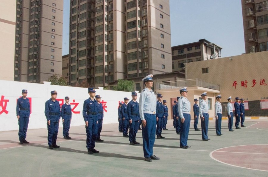 为进一步加强消防条令条例学习,推动队伍正规化建设发展,近日,武山县消防救援大队组织全体文员开展队列训练。  此次训练主要开展了立正、稍息、齐步与跑步等基本队列训练项目。训练过程中,全体人员精神饱满,始终以端正的态度、整齐的步伐、响亮的口号开