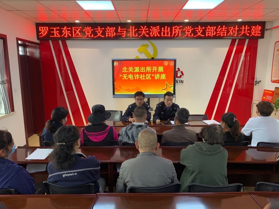 为充分发挥广大党员在社区党建和社区建设中的积极作用,2020年5月14日上午,罗玉新村社区东区党支部与北关派出所党支部结对共建,依托新时代文明实践站,为辖区居民带来一堂“防电信诈骗”知识讲座。讲座中,派出所民警从诈骗的9种常见手段、电信诈骗