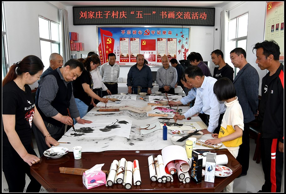 “五一”长假期间,天水市麦积区石佛镇刘家庄子村举行庆“五一”书画交流笔会、秦腔艺术展演主题活动,丰富群众文化生活,让村民乐享节日精神文化大餐。 连日来,数10位天水知名书画艺术家、秦腔表演艺术家,不畏酷暑来到刘家庄子村为村民们
