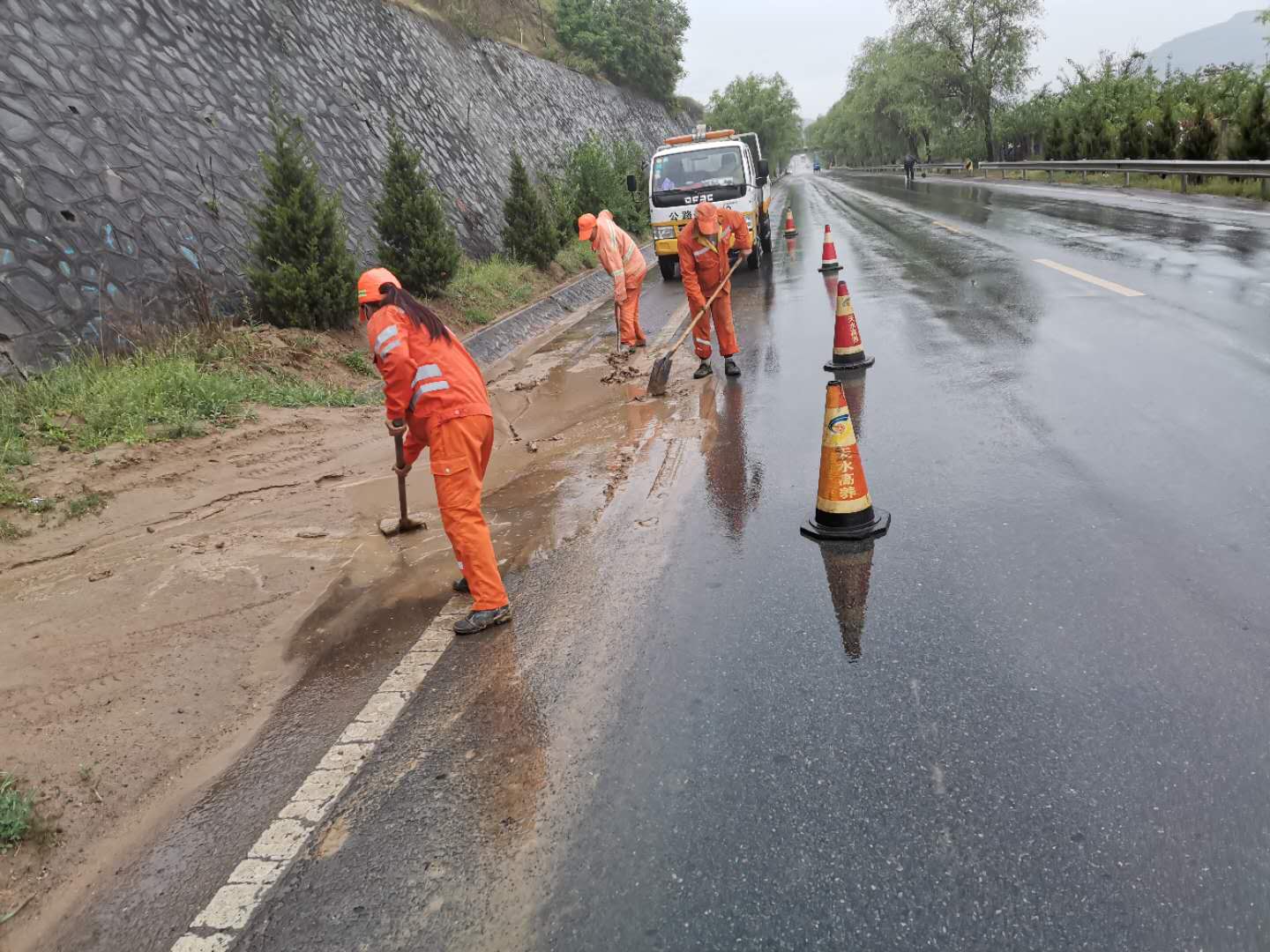 5月6日19时开始,甘肃天水市自西向东出现强降水天气。天水公路局高养中心提前将甘肃公路交通气象预警信息传递到养护生产一线,降雨发生后,联合养护企业开展夜间降雨天气特殊巡查。7日一大早,组织养护职工和车辆上路进行雨后全面巡查,排查路基、路面