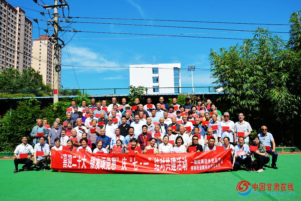 中国甘肃在线麦积讯 6月24日上午,在建党101周年到来之际,陇林社区党总支组织辖区党员一百余人在一勘院离退休党支部党员活动室,为“喜迎二十大,银发颂党恩”,党组织共建活动,庆祝党的生日,举行了隆重、丰富的多彩活动。甘肃省地矿局一勘院离退休