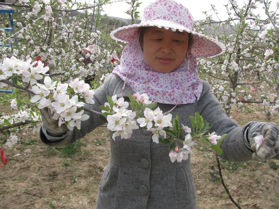连日来,天水青青果业开发有限公司的果农们还忙着为苹果疏花。该公司地处麦积石佛镇北山梁流域,种植优质苹果500多亩,花椒80多亩。目前正日为苹果疏花的大好季节,满山坡都是一片白色的海洋,更是一道亮丽的风景线。三五成群的妇女们给苹果疏花,为来年