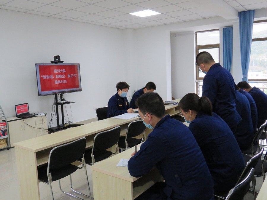 4月21日,秦州大队召开“促和谐、保稳定、树正气”集体讨论会。会议由大队党委书记、政治教导员刘江艳主持。讨论会上,参会人员结合自身工作岗位实际,从进一步加强队伍人员团结友爱、持续维护队伍内部高度集中统一、不断营造风清气正良好环境进行了讨论交