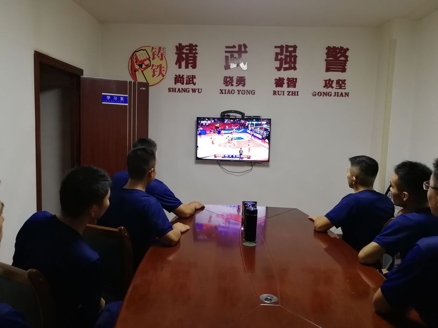 8月31日,2019年国际篮联篮球世界杯在北京等八个举办城市正式开赛,这也是这项4年一届的赛事首次在中国举办。9月4日晚上,篮球世界杯A组中国队VS委内瑞拉,天水支队七里墩中队中队长徐磊组织中队全体指战员在学习室观看了整场比赛。
