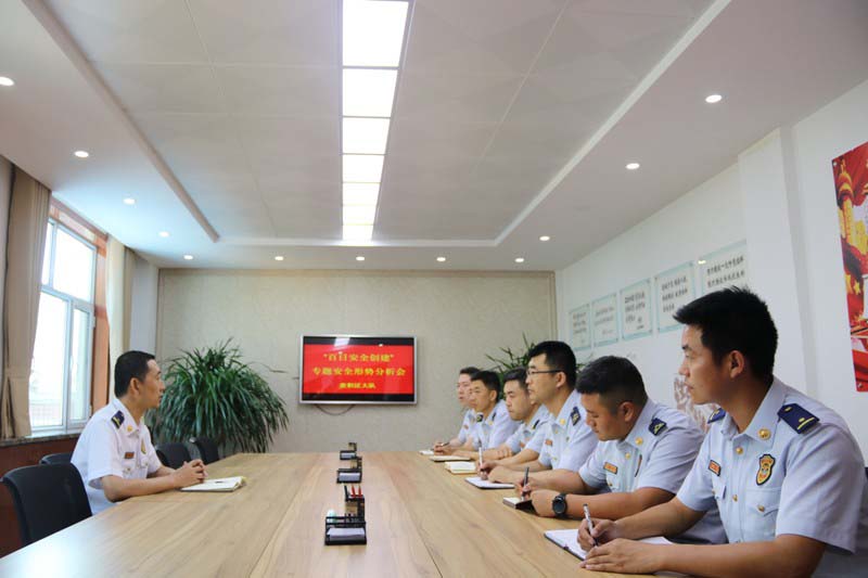 为进一步强化大队执勤备勤和队伍管理,切实加强日常安全教育,严防各类安全事故和违法违纪事件的发生,近日,大队组织召开队伍安全形势分析会,总结分析了前一阶段各项安全工作开展的情况,并就下一步工作重点进行研究和部署。 会上,政治教导员深刻分析了