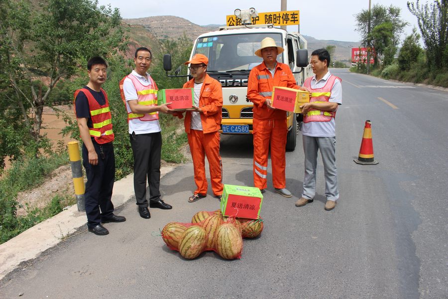 近日,武山公路段开展了"夏送清凉"活动,慰问在酷暑中坚持工作的养护一线职工。慰问期间,为一线养护职工送上了绿豆、冰糖、凉茶、西瓜等防暑降温慰问品,同时要求职工做好高温天气状况下的防暑降温措施,尽可能减少在高温天气状况下的