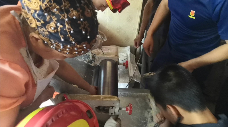 8月5日上午9时,位于天水市清水县永清镇中山路烤饼店内一名中年妇女手被压面机卡住,情况紧急,急需救援,天水市消防支队清水中队接指挥中心命令后立即赶赴现场进行处置。消防员到场后发现,一名中年妇女压面时不慎被压面机滚轴卡住左手,神情显得十分痛苦
