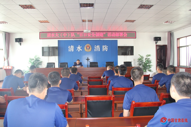 为进一步加强当前队伍管理和安全防事故工作,有效防范和遏制各类事故案件的发生,确保队伍高度稳定,按照支队通知要求,7月15日上午,清水大(中)队迅速召开“百日安全创建”活动动员部署会,大队除值班执勤外的全体指战员、专职消防员、文员参会。会议由
