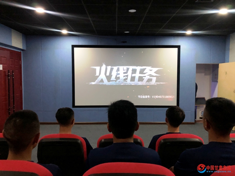 为缓解新招录专职消防员集训班队员的训练压力,丰富集训队员文化生活,教育引导新队员始终保持良好的精神状态,6月19日晚,甘谷中队利用休息时间组织新招录专职消防员集训班队员在中队红门影院观看电影《火线任务》。  本片讲述了一群消防员的热血故事