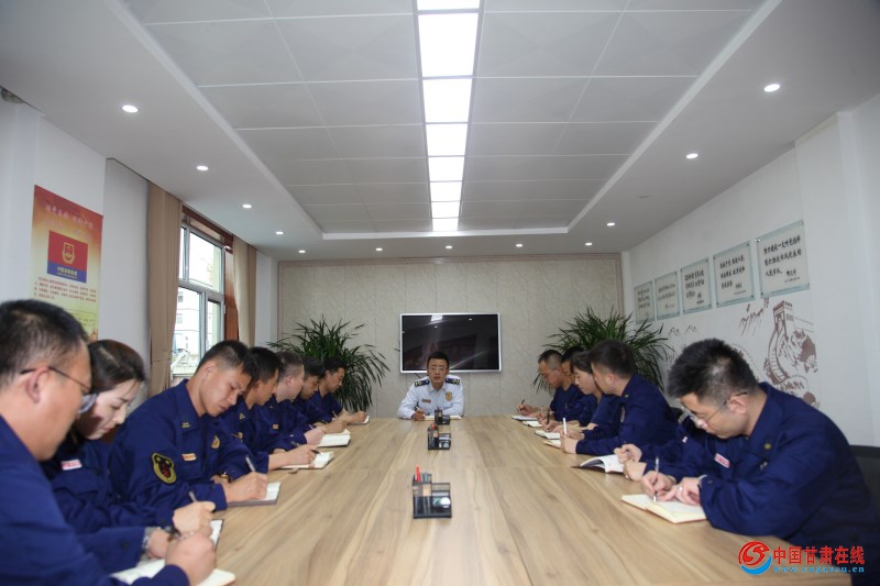 为深入学习贯彻支队第六次行政办公会精神,切实做好下一阶段各项工作,6月5日,清水大中队召开会议传达学习支队六月份行政办公会精神,大中队全体指战员、文员参加会议。   会上,大队长杜鹏首先向大中队全体人员传