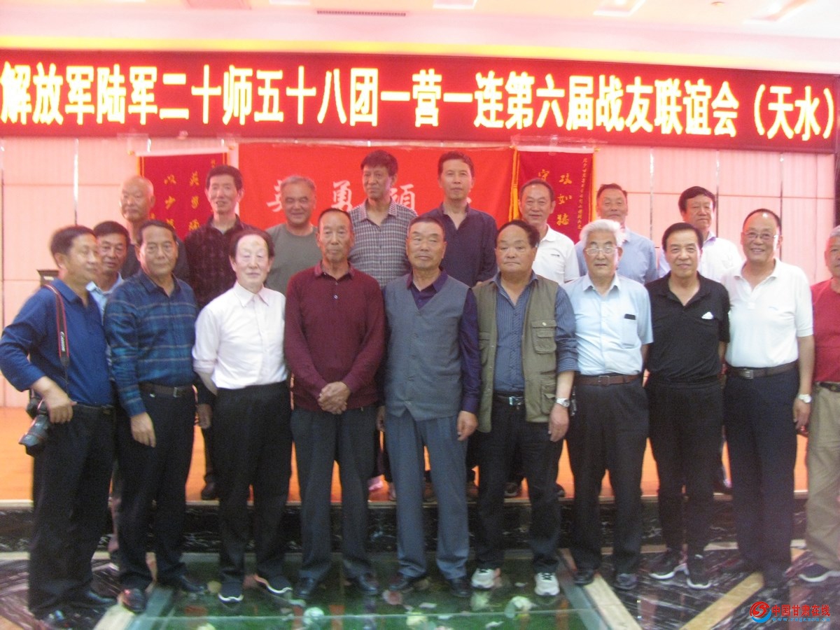 5月23日晚,中国人民解放军原陆军二十师五十八团一营一连第六届老战友联谊会100多人在天水市麦积区万达酒店举行。来自全国各省、市的老战友在“羲皇故里”天水隆重相逢,欢聚一堂。一连是一支光荣的连队(骑兵连),
