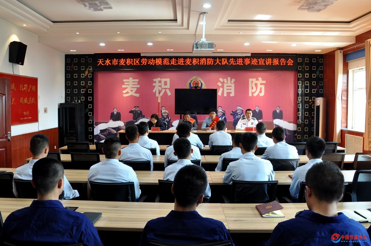 为大力弘扬劳动模范的先锋引领作用, 5月24日,麦积区总工会组织市、区级劳动模范走进麦积消防大队深入先进事迹宣讲活动,全区迅速掀起了学习劳模的热潮。宣讲活动特别邀请全国优秀党务工作者,天水市劳动模范刘田家