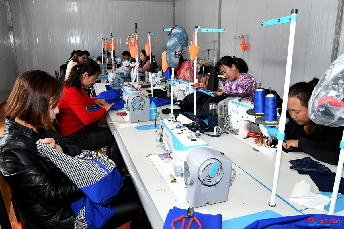 5月13日,天水市麦积区石佛镇石佛村村民正在“扶贫车间”内加工服装。去年,该镇在推进精准扶贫过程中建立了“扶贫车间”,通过对工人进行岗前安全教育、缝纫技术培训持证上岗,有效解决了40多名建档立卡贫困妇女、陪