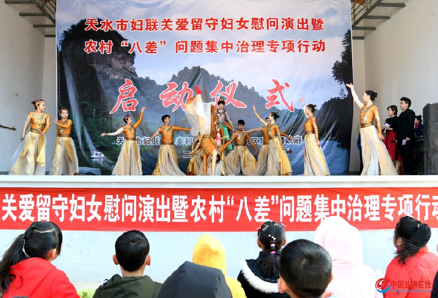 1月23日,天水市妇联关爱留守妇女慰问演出暨农村“八差”问题集中治理专项行动在麦积区利桥镇举行启动仪式,以实际行动落实全市精准扶贫战略部署。市妇联主席何忠兰、市妇联调研员曹亚玲出席启动仪式并讲话。何忠兰在