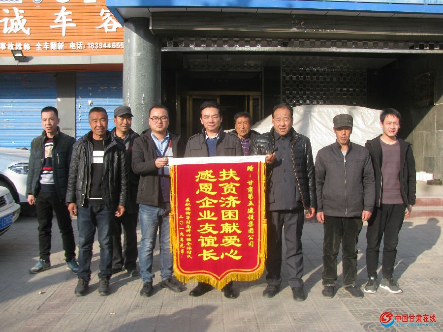 1月25日下午,麦积区麦积镇街亭村党支部副书记带领南坪自然村李随兴一行将一面“扶贫济困献爱心,感恩企业友谊长”的锦旗送到了第五工程公司。该公司俞建佳,系麦积区人大代表、第五工程公司经理,为麦积镇街亭村南坪