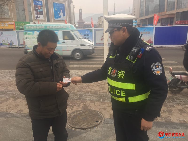 2019年1月2日中午,有一热心市民在乘坐公交车时捡到一张身份证,随求助于天水市公安局麦积分局交通警察大队城区二中队的执勤民警。接到求助后,民警迅速使用最新配发的“警务通”查询并成功联系上失主王某,次日,失