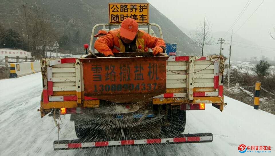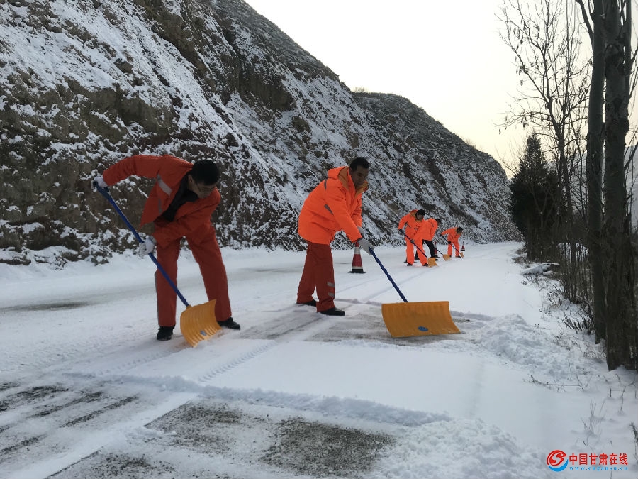 中国甘肃在线天水讯(通讯员刘志伟)12月27日,武山县境内突降小到中雪,部分路段积雪厚4至7公分,严重阻碍了道路安全通行。武山公路管理段以雪为令,组织全段职工上路除雪防滑保畅通。