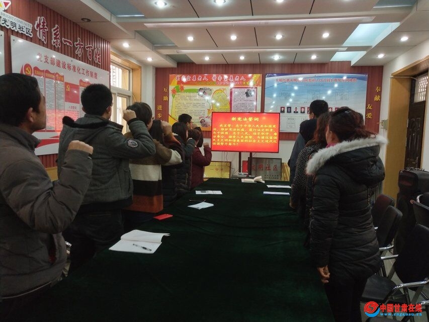 为了弘扬宪法精神,树立宪法权威。 12月7日上午,光明巷社区组织党员干部开展了系列宪法宣传活动。一是组织大家在国旗前进行宣誓。列队肃立,面对国旗,举手握拳,逐句跟读,“我宣誓:忠于中华人民共和国宪法,维护