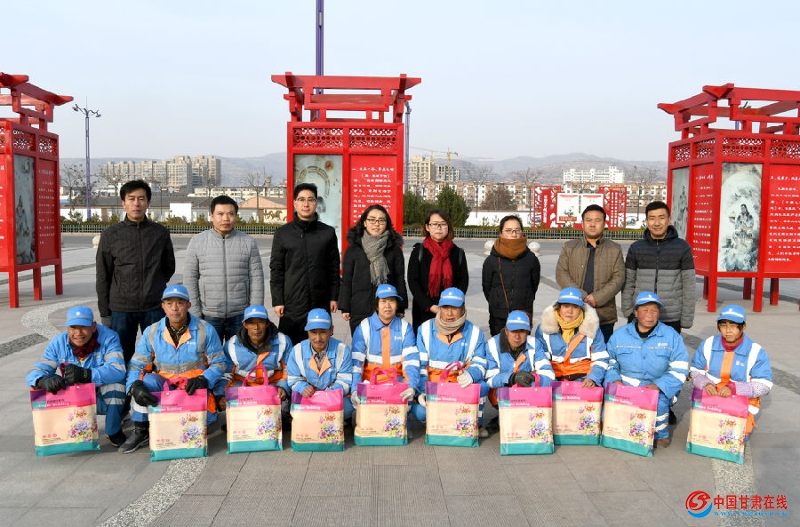 12月7日,麦积区桥南街道办事处龙园、新苑社区党组织联合开展“寒冬送温暖”主题党日活动,为辖区工作的10名一线环卫工人送去了床单、被罩,同时也把辖区党组织的关怀和寒冬里的温暖送到环卫工人的心坎上。(通讯员