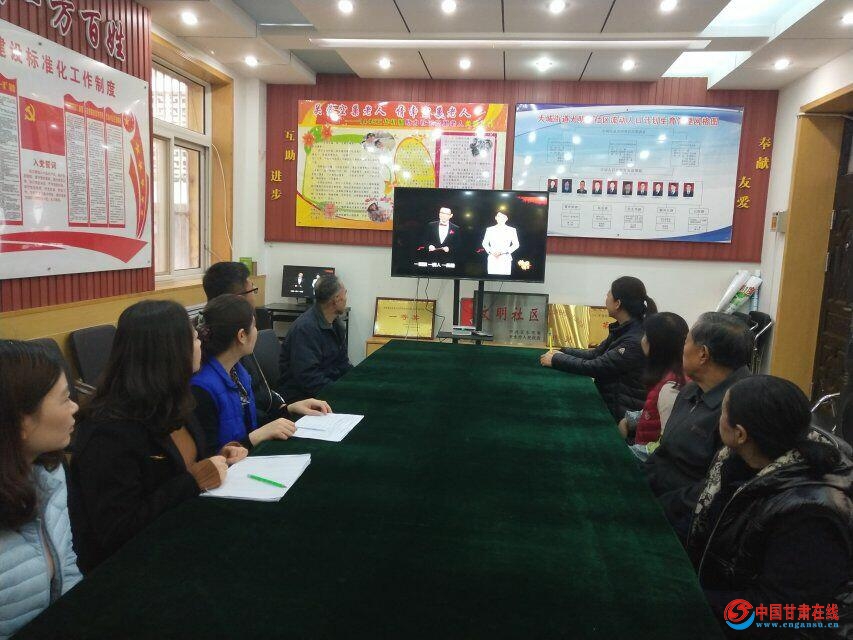 为深入学习贯彻习近平新时代中国特色社会主义思想和党的十九大精神,推进“两学一做”学习教育常态化制度化,11月15日,大城街道光明巷社区党委组织党员干部和入党积极分子集中收看了反映优秀共产党员和先进基层党