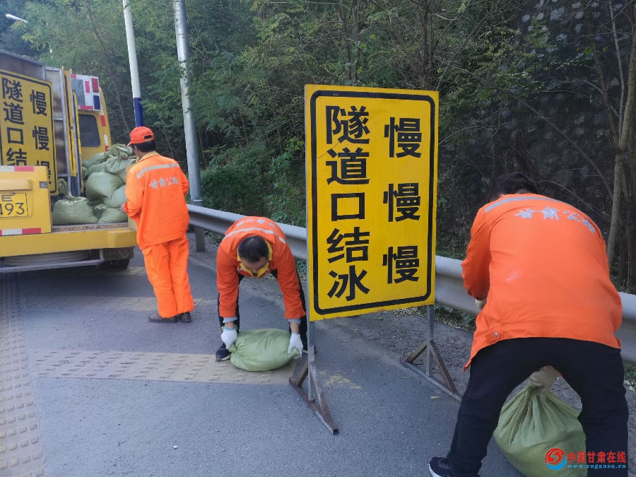 甘肃天水地区虽然还未出现降雪天气,但由于近日大幅降温、隧道出入口环境和过往大型货车刹车淋水等因素,易造成隧道口路面湿滑结冰,导致车辆失控、追尾、碰撞,影响行车安全。为消除安全隐患,甘肃天水公路管理局高