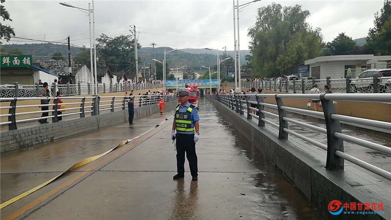 8月21日下午,天水市麦积区突降暴雨,一时间雨越下越大,风越刮越猛,城区道路部分路段出现积水和拥堵,对此,天水市公安局麦积分局交警大队城区二中队的执勤民警迅速启动“恶劣天气应急预案”,冒雨穿梭在暴风雨中