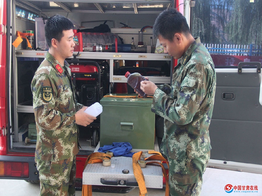 为进一步加强部队执勤战备工作,确保敦煌文化博览会期间的消防安全保卫工作及时到位、中秋国庆“双节”期间执勤车辆器材时刻完整好用,9月20日下午,武山中队对所有车辆器材装备进行了一次彻底的保养检修。