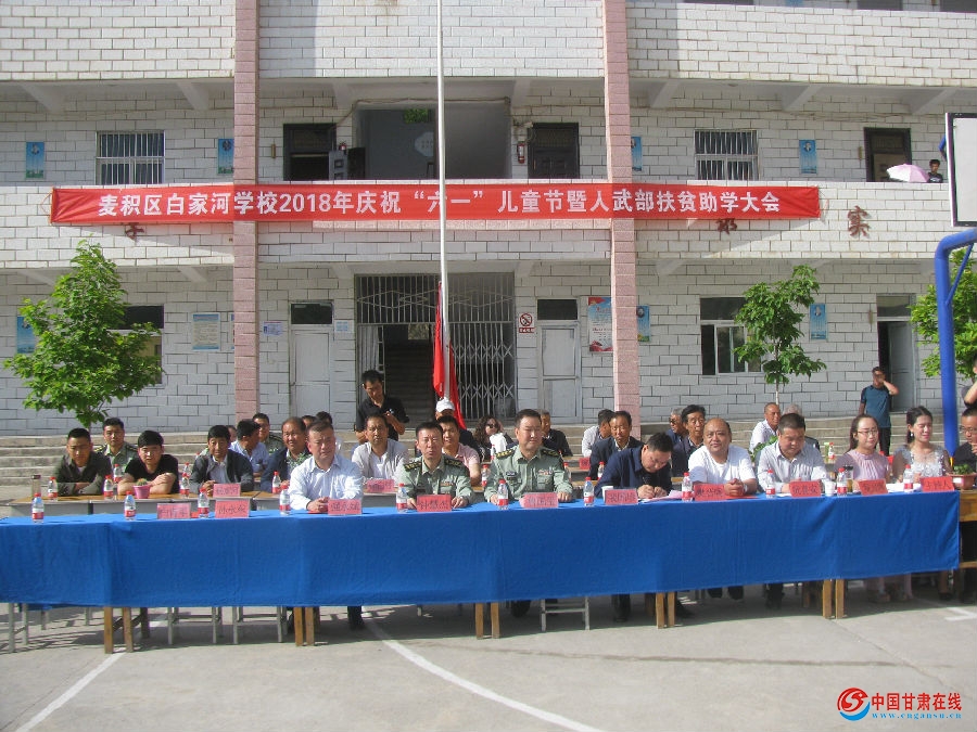 5月31日上午,麦积区人武部部长鲁国玺、政委钟慧杰带领干部职工深入花牛镇白家河学校,在庆祝“六一”儿童节之际,为全校123名学生赠送书包、学习用品及节日的祝福,受到师生们的热烈欢迎。活动现场学校为新入队儿