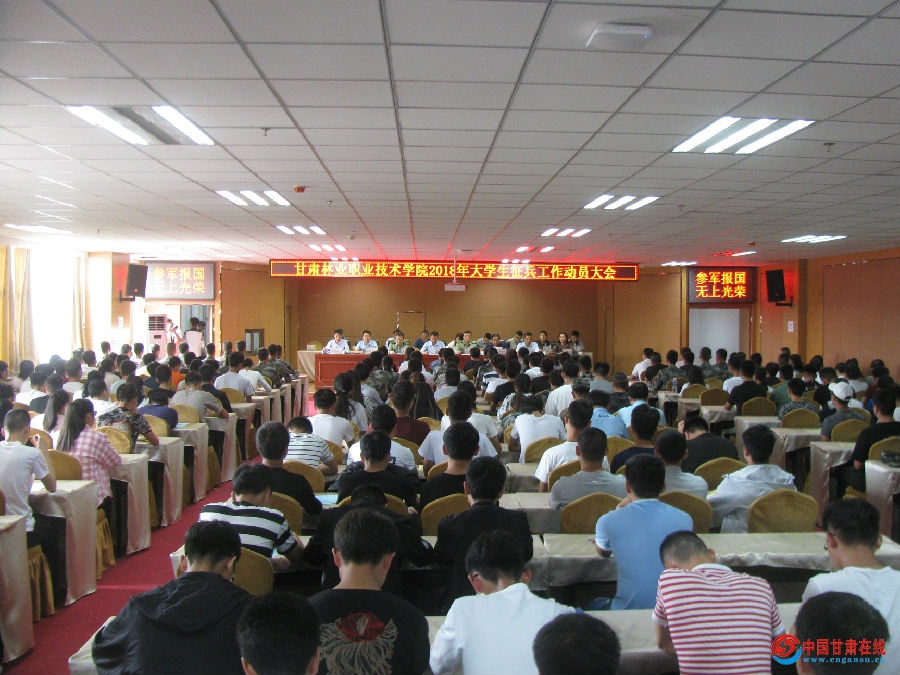 中国甘肃在线天水讯(天水市麦积记者 李凤旗)5月16日下午,甘肃省天水市麦积区人武部一行深入省林业职业学院参加2018年该院大学生征兵宣传动员大会。甘肃省天水军分区国防动员处处长侯长勤、麦积区人武部部长鲁国玺