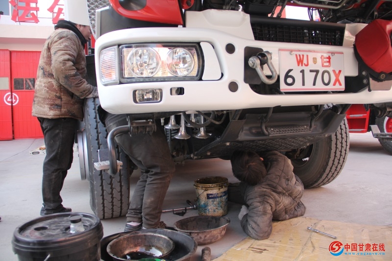 • 特勤中队为车辆更换机油做好冬季车辆保养工作
