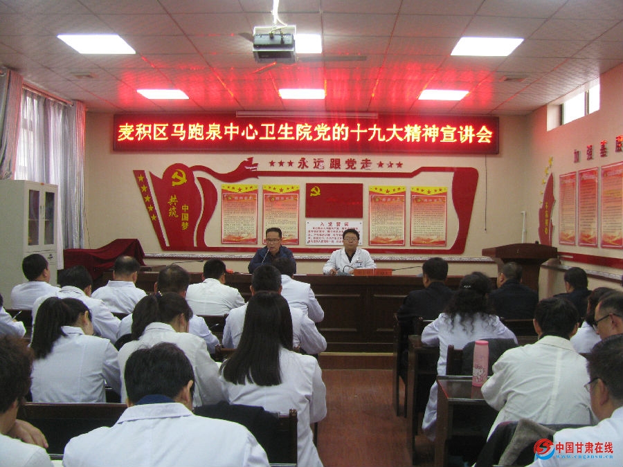 中国甘肃在线讯 麦积记者站:李凤旗3月7日,麦积区马跑泉中心卫生院召开宣讲党的十九大精神报告会在卫生院举行该院医护人员、职工、部分村医70多人参加了报告会,由麦积区委党校讲师马向荣主讲。为更好地领会和把握党