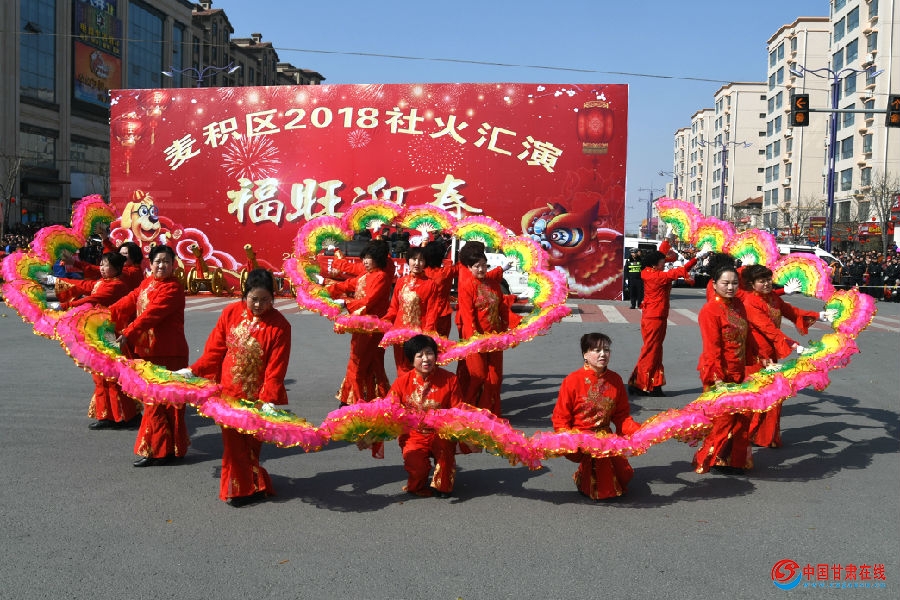 中国甘肃在线天水讯(特约记者:窦耀辉)2月28日,农历正月十三,天水市麦积区2018年“福旺迎春”社火汇演在桥南天河路精彩上演。当天,来自该区马跑泉、花牛、社棠、甘泉、麦积等乡镇和桥南、北道埠以及道北办事处
