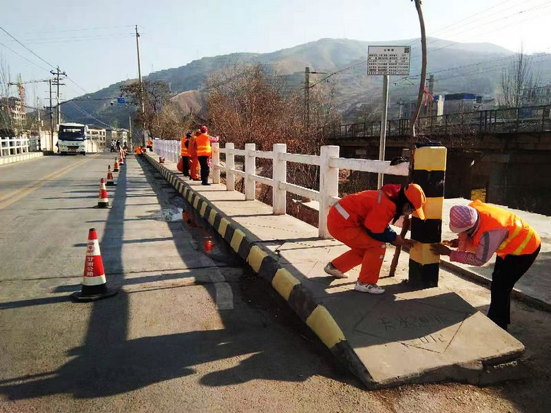 为全面提升公路安全通行状况,进一步营造“畅、安、舒、美”的良好公路通行环境,近日,武山公路段积极组织人员抢抓晴好天气,按照规范要求对辖养S208线洛礼路、S225线三锁路、S326线武碌路等线路公路沿线的示警柱、护柱、桥梁护栏、防撞护栏、里