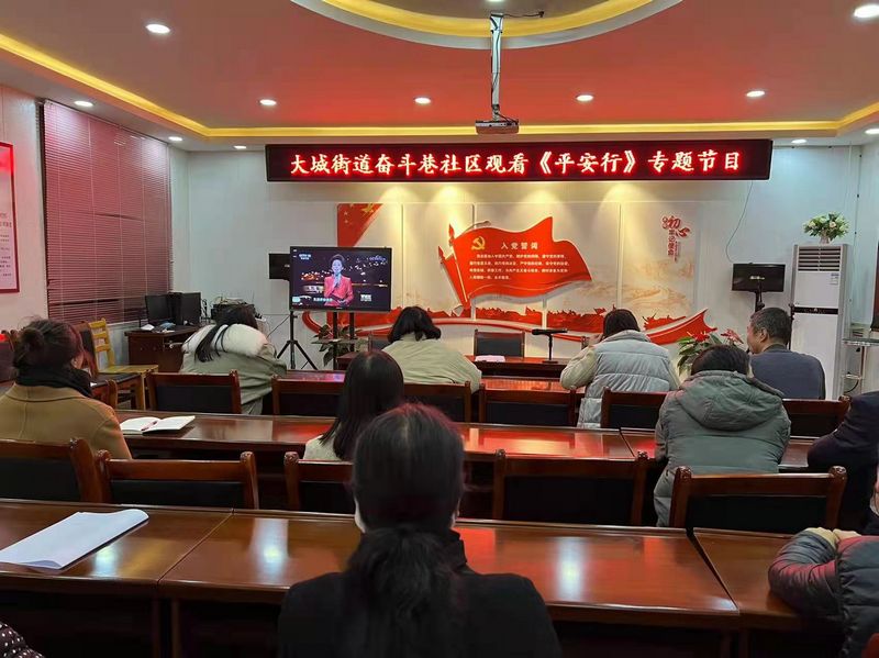 为增强干部职工及居民的交通安全意识,培养安全出行和文明交通的行为习惯;为营造文明交通、安全出行的浓厚舆论氛围。大城街道奋斗巷社区于2021年12月3日晚6点45分,组织辖区居民及辖区居民共同学习有CCTV-12频道播出的《平安行》专题活动。
