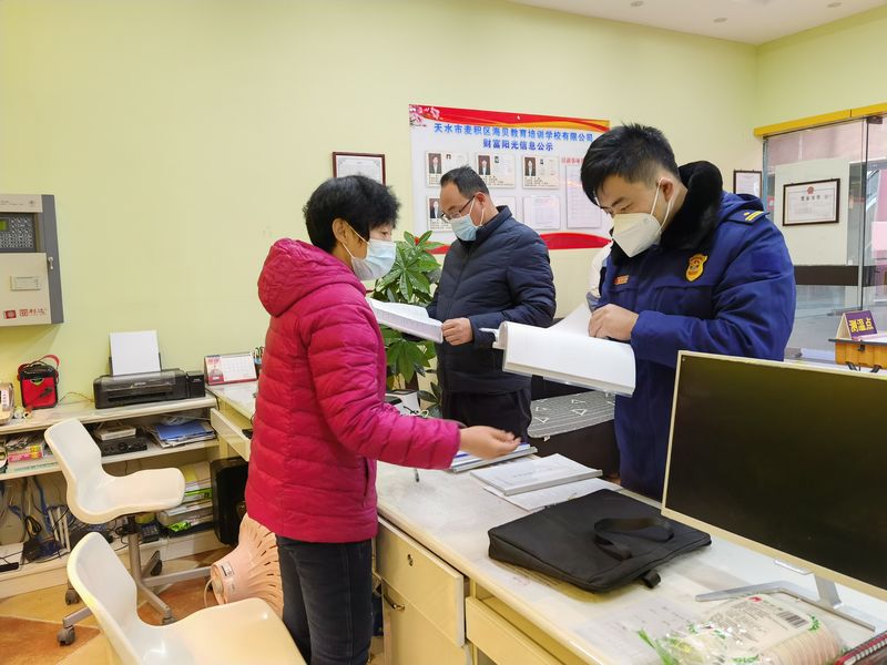为切实加强校外培训机构的消防安全管理,严防火灾事故发生,12月3日,麦积区消防救援大队联合区应急管理局、区教育局、派出所等单位对辖区校外培训机构开展消防安全专项检查,及时清除火灾隐患,有效净化校外机构的办学环境。  检查组一行深入辖区校外培