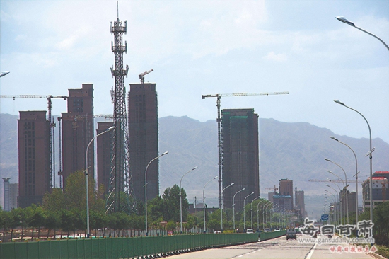武威市天颐大道旁新建的城乡融合新型社区居民住宅楼一角。